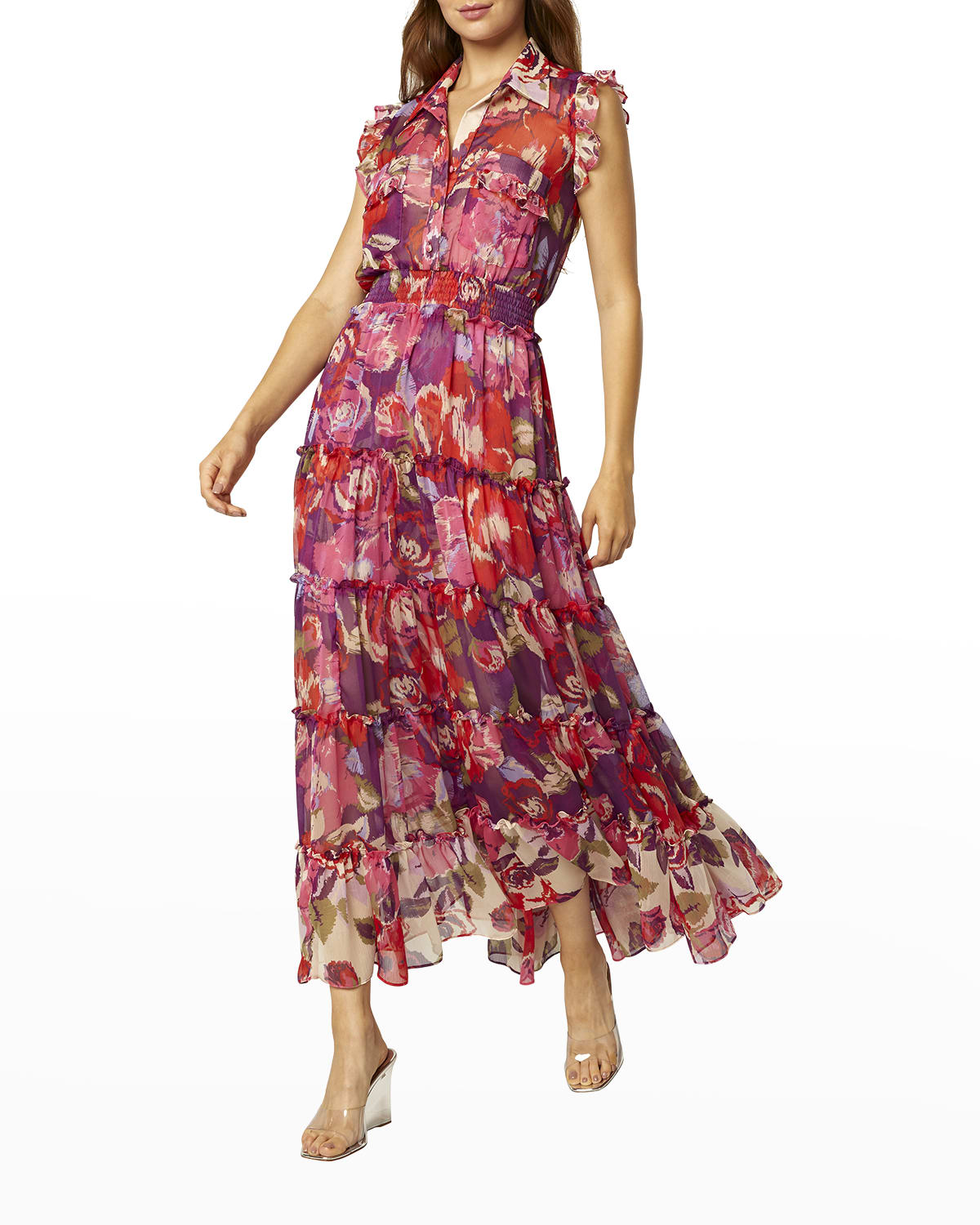 Floral Print Chiffon Dress Neiman Marcus